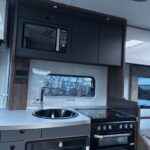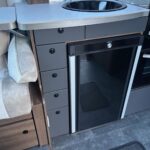 • Thetford K1520 MK2 Black Gloss Oven, grill and dual fuel hob with spark ignition and 800w electric hotplate, three gas burners with smoked glass lid, additional oven shelf and interior light.