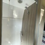 - The bathroom is equipped with a Thetford toilet shower and sink