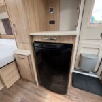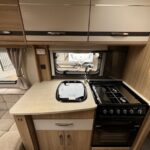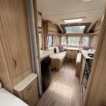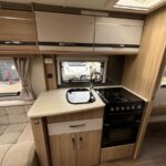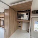 - The central kitchen is well equipped with a microwave, Dometic fridge with freezer compartment, Thetford 4 burner combi hob, oven and grill and sink
