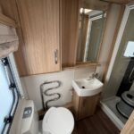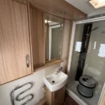 - The rear transverse bathroom is spacious and modern consisting of a separate shower cubicle, vanity washbasin and Thetford cassette toilet