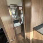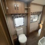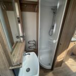 - Bathroom area with Thetford cassette toilet, vanity washbasin, and a separate shower cubicle