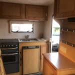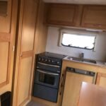 - Kitchen equipped with 4 burner hob, oven and grill, Dometic fridge freezer and sink