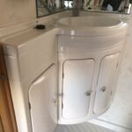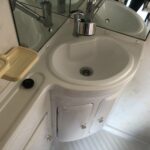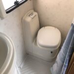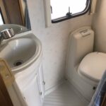 - Washroom equipped with Thetford cassette toilet, vanity washbasin, and shower