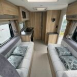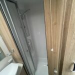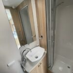 • Rear bathroom with shower cubicle, Thetford cassette toilet, and vanity washbasin