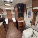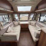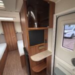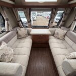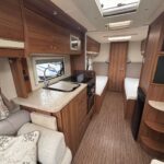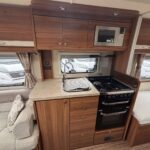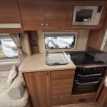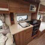 - The central kitchen is spacious and well equipped with a Thetford 4 burner hob, oven and grill, Microwave, sink and Dometic fridge freezer
