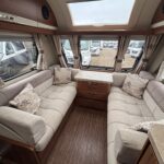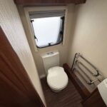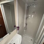 - The rear bathroom is spacious and consists of a Thetford cassette toilet, vanity washbasin and separate shower cubicle