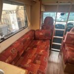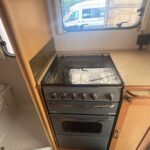 - There is a rear kitchen area well equipped with a sink, a 4-burner hob and oven, and a fridge freezer