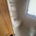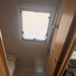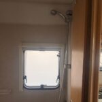 - The washroom is spacious and consists of a shower, a Thetford cassette toilet and a pull-down washbasin