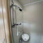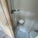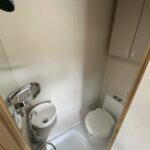 - Wetroom with Thetford cassette toilet, vanity washbasin, and shower