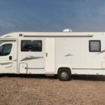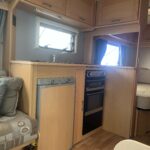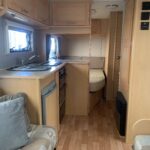 - The wetroom is equipped with a shower, Thetford toilet, and sink