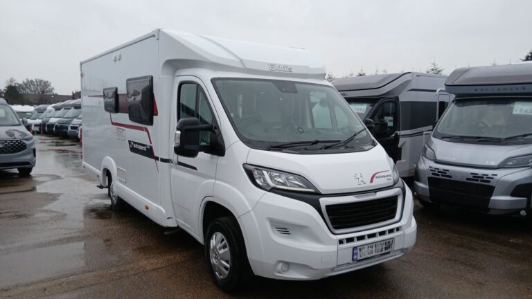 - The kitchen area is equipped with a sink, 4 burner hob, Russel Hobbs microwave, Dometic fridge freezer and a Thetford oven and grill