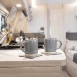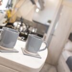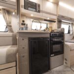 - NEW 'Tibero with Platino & Linum Haithabu material scheme, handcrafted dove-tailed drawers, ‘Quiet-Close’ overhead lockers, removable shelves, co-ordinating flush-fit kitchen units with Chrome inset detail and positive locking throughout