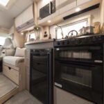 - Thetford K1520 MK2 Black gloss enamelled oven, grill and 3-burner gas hob with spark ignition, with smoked glass lid.