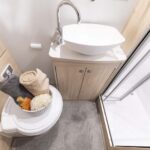 - Conveniently placed 12V control panel, incorporating water pump, lighting circuits, fresh water tank level and waste warning light when full