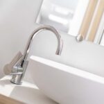 - ‘Boutique’ washbowl basin with click-clack plug, swan-neck mixer tap (exc 155)