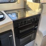 - Thetford K1520 MK2 Black gloss enamelled oven, grill and 3-burner gas hob with spark ignition, with smoked glass lid.