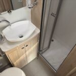 - Thetford toilet with auto fill flush from on-board water tank