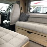 • The front lounge makes up into two travel seats