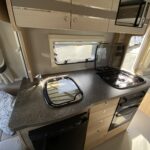 - Well equipped kitchen with 3 burner combi hob, Thetford oven and grill, Dometic fridge freezer, microwave and sink