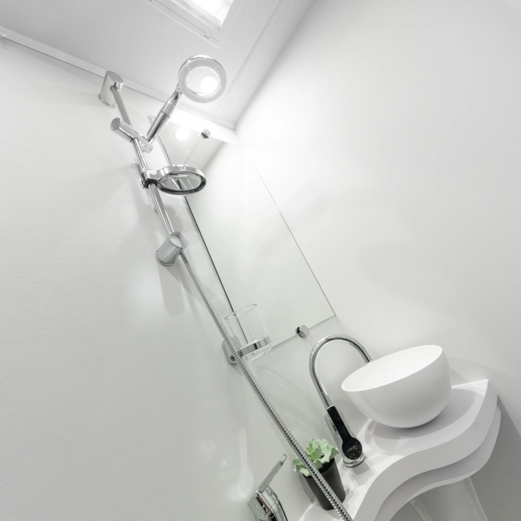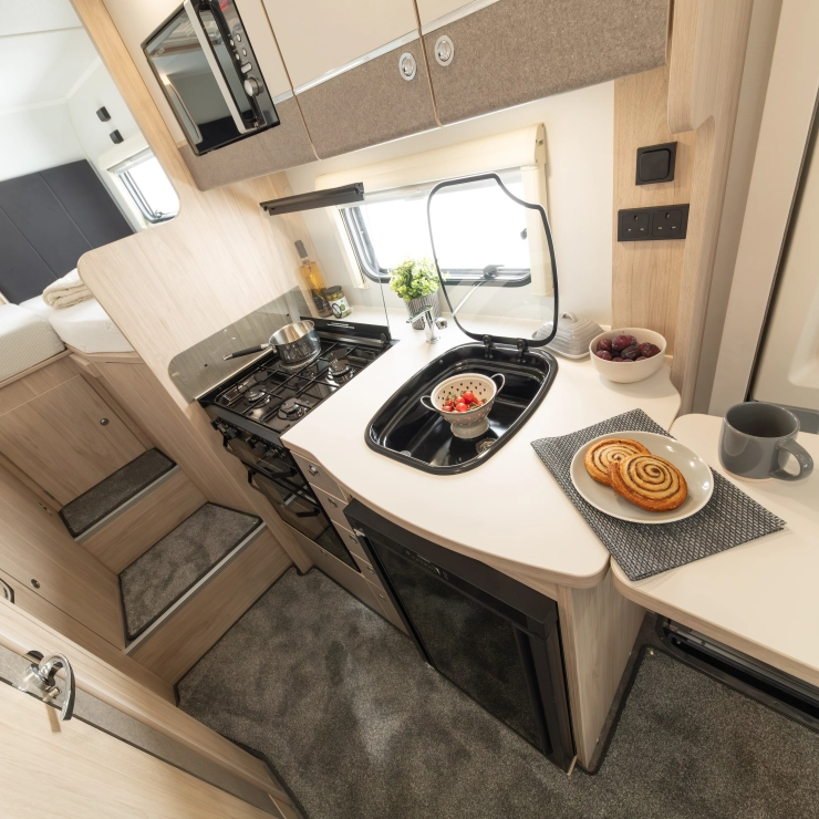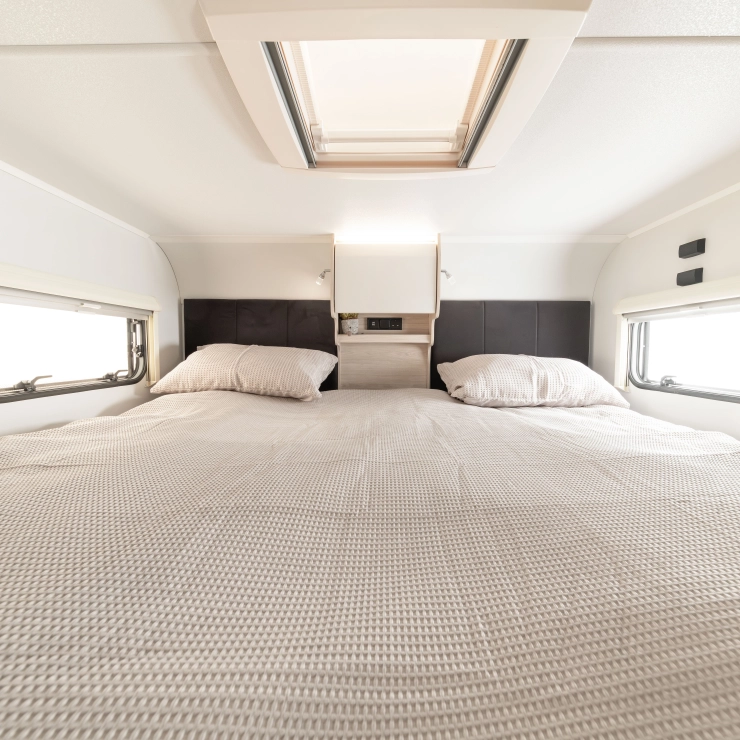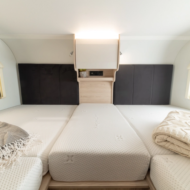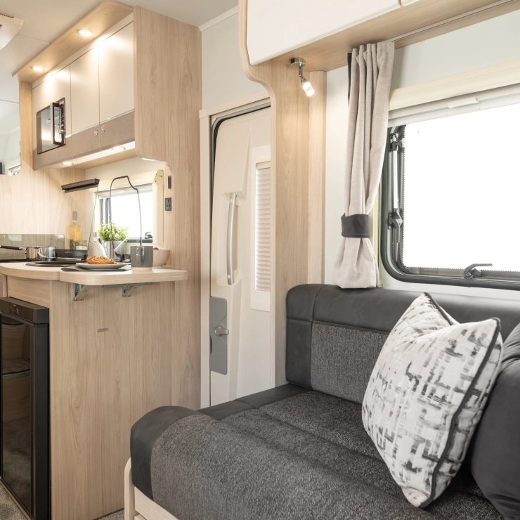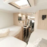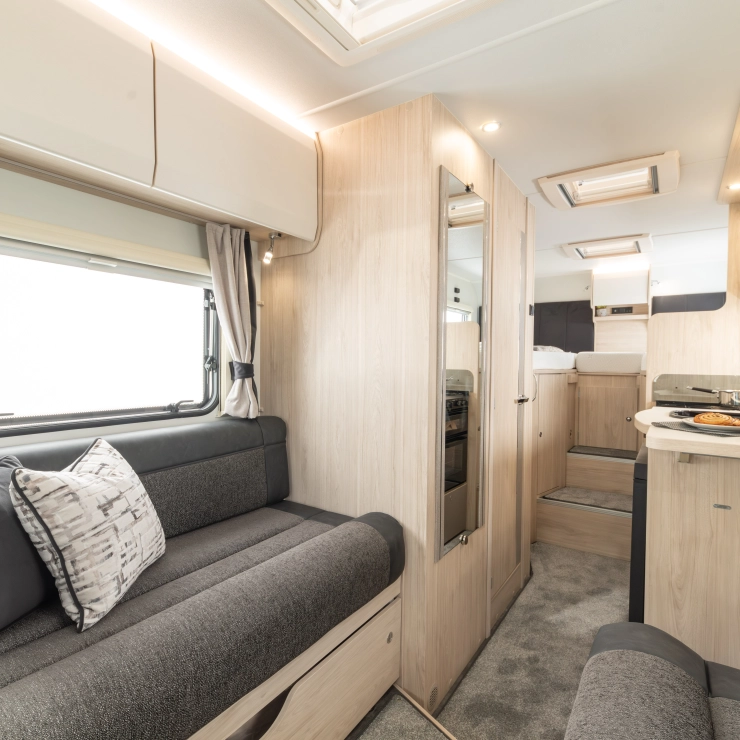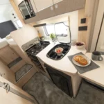 • The Elddis ZIP System: A fully bonded, marine-grade aluminium construction method that delivers superior strength, stability, and water ingress protection through a sealed metallic frame and precision engineering. HaloTEC: Seamless interior walls made from RENOLIT’s CORK-STOCK — water-resistant, wipe-clean, and elegant.