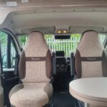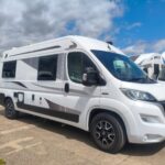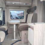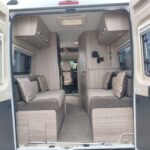 - The washroom is spacious and consists of a shower, a Thetford cassette toilet and a vanity washbasin
