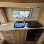 - The rear kitchen is spacious and well equipped with a 4 burner combi hob, Thetford oven and grill, sink, Dometic fridge freezer and Daewoo Microwave