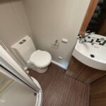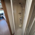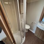 - The bathroom to the rear is spacious with a separate shower cubicle, Thetford cassette toilet and vanity washbasin as well as a spacious wardrobe space