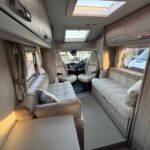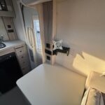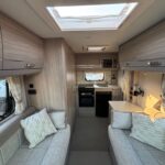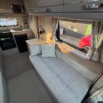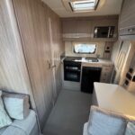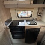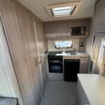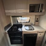 - There is a spacious and well-equipped kitchen to the rear with a Thetford 4 burner hob, oven and grill, Dometic fridge freezer, sink and Russell Hobbs Microwave