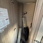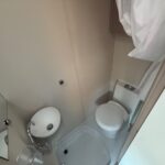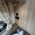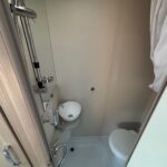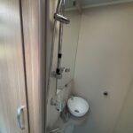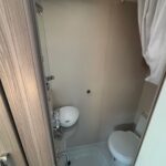 - The rear washroom is modern and well-equipped with a Thetford cassette toilet, vanity washbasin and shower