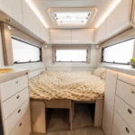 - Midi Heki rooflight with flyscreen and blind in lounge, with MPK VisionStar M pro (400x400) in bathroom and over fixed bed (Where applicable)