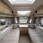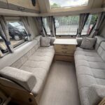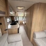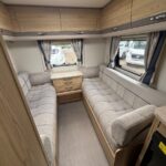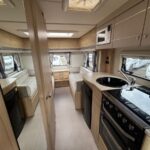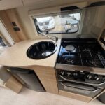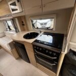 - The kitchen area is well equipped with a 4 burner combi hob, Thetford oven and grill, Dometic fridge with freezer compartment, Daewoo microwave and sink