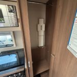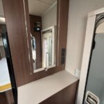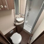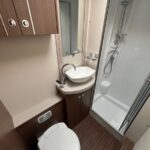 - The bathroom comes with a Thetford electric flush toilet, vanity washbasin and a separate shower cubicle