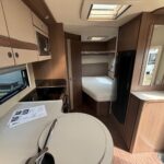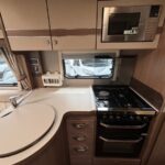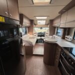 - The kitchen comes equipped with an XL Dometic fridge freezer, Dual fuel hob, Thetford oven & grill, microwave and a sink