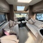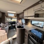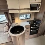 - The kitchen is well equipped with a 4 burner hob, Thetford oven and grill, Dometic fridge freezer, microwave and sink