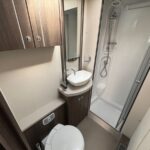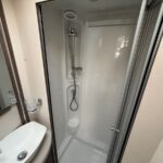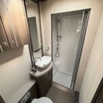 - Rear bathroom with shower cubicle, Thetford cassette toilet, and vanity washbasin