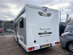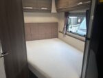 A 4-berth motorhome with a rear-fixed French double bed. The front lounge area converts to a comfortable double bed. Well-equipped kitchen with 4 burner hob, Thetford oven and grill,  sink, microwave, and Dometic fridge freezer. Rear bathroom with shower cubicle, Thetford cassette toilet, and vanity washbasin.