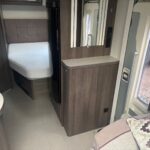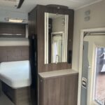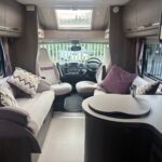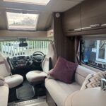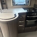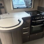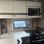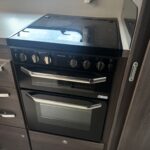 - The kitchen is well equipped with a 4-burner hob, Thetford oven and grill, Dometic fridge freezer, microwave and sink