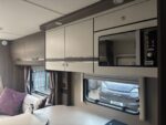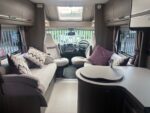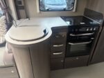 • The kitchen is well equipped with a 4-burner hob, Thetford oven and grill, Dometic fridge freezer, microwave and sink