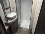 • Rear bathroom with shower cubicle, Thetford cassette toilet, and vanity washbasin