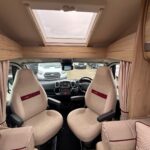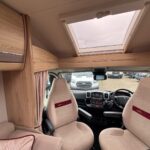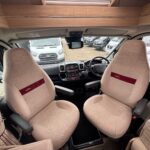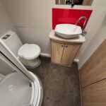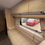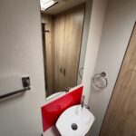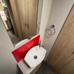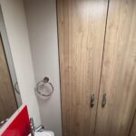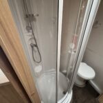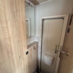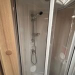 - The bathroom is spacious and consists of a shower cubicle, vanity washbasin, Thetford cassette toilet and wardrobe space