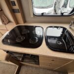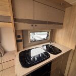 - The rear kitchen is well equipped with a Dometic fridge freezer, microwave, 4 burner hob, sink and Thetford oven and grill