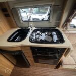 - The kitchen is well equipped with a 4 burner combi hob, Dometic fridge with freezer compartment, Thetford oven and grill and a Microwave