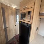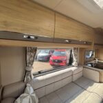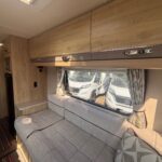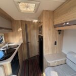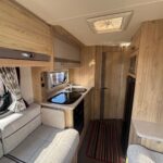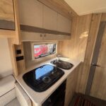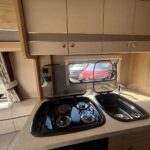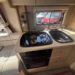 - The rear kitchen is equipped with a 4 burner hob, sink, Thetford oven and grill, Dometic fridge freezer and microwave