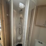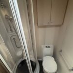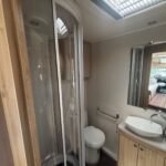 - The rear bathroom is spacious and consists of a shower cubicle, a Thetford cassette toilet and a vanity washbasin