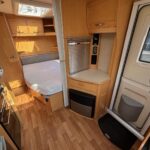 - The central kitchen is well equipped with a 3 burner hob, Thetford oven and grill, Thetford fridge freezer, sink and Microwave