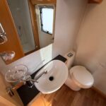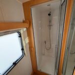 - The rear bathroom is spacious and consists of a Thetford cassette toilet, vanity washbasin and separate shower cubicle