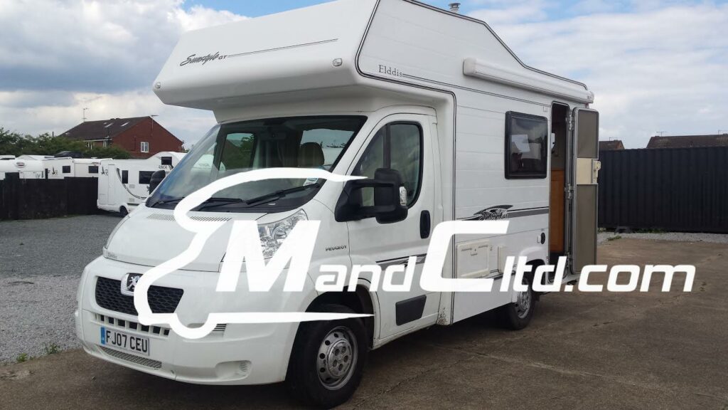 End Kitchen area equipped with a 3 burner gas hob, oven/grill, 3 way Dometic Fridge, and Sink