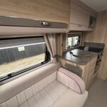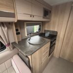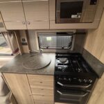 - The central kitchen is well equipped with Thetford 4 burner hob, oven and grill, Microwave, sink and Dometic fridge freezer
