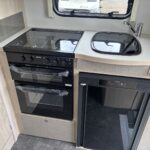 • Thetford K1520 MK2 Black gloss enamelled oven, grill and 3-burner gas hob with spark ignition, with smoked glass lid.