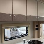 • ‘Tibero with Platino & Linum Haithabu material scheme, handcrafted dove-tailed drawers, ‘Quiet-Close’ overhead lockers, removable shelves, co-ordinating flush-fit kitchen units with Chrome inset detail and positive locking throughout